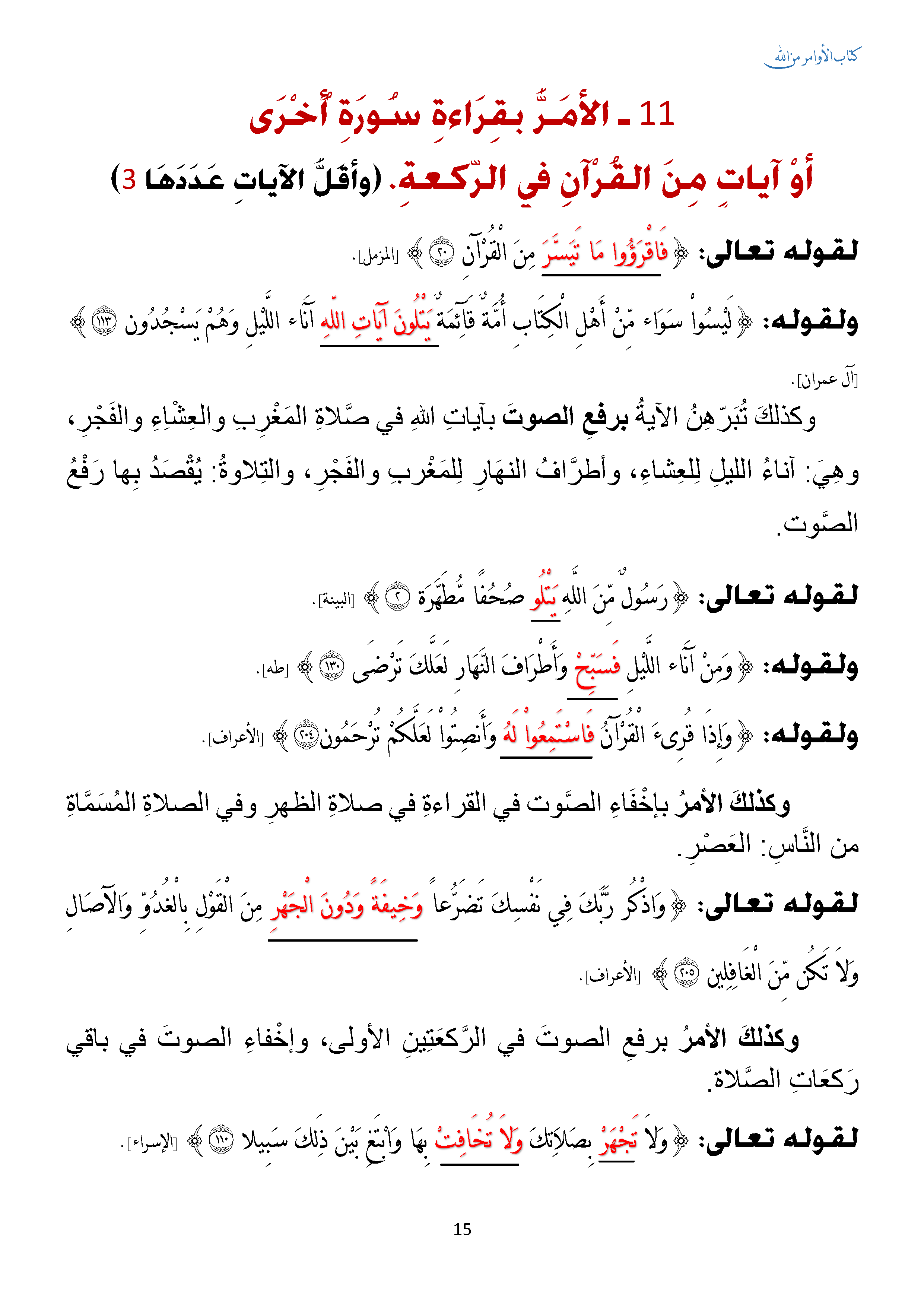 الأمر بقراءة سورة اخرى