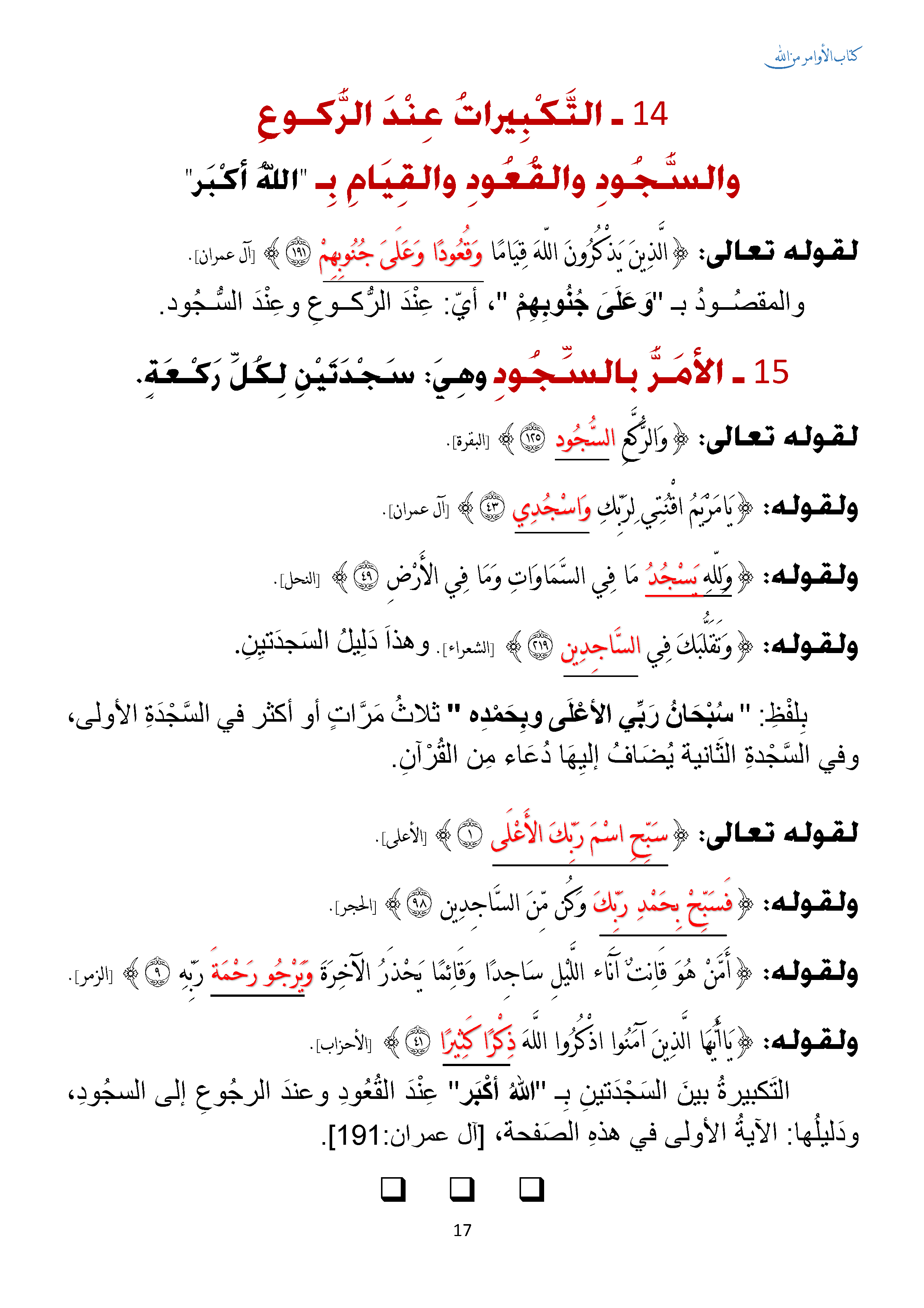 • التكبيرات عند الركوع والأمر بالسجود