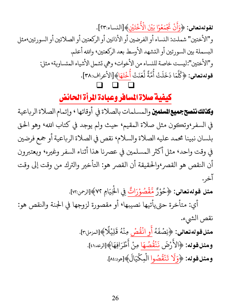 كيفية صلاة المسافر وعبادة المرأة الحائض